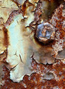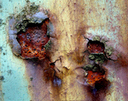 | Rusting radiator cowl | Orange streaks | Old press | Eaten away | Flaking paint | Eruption |